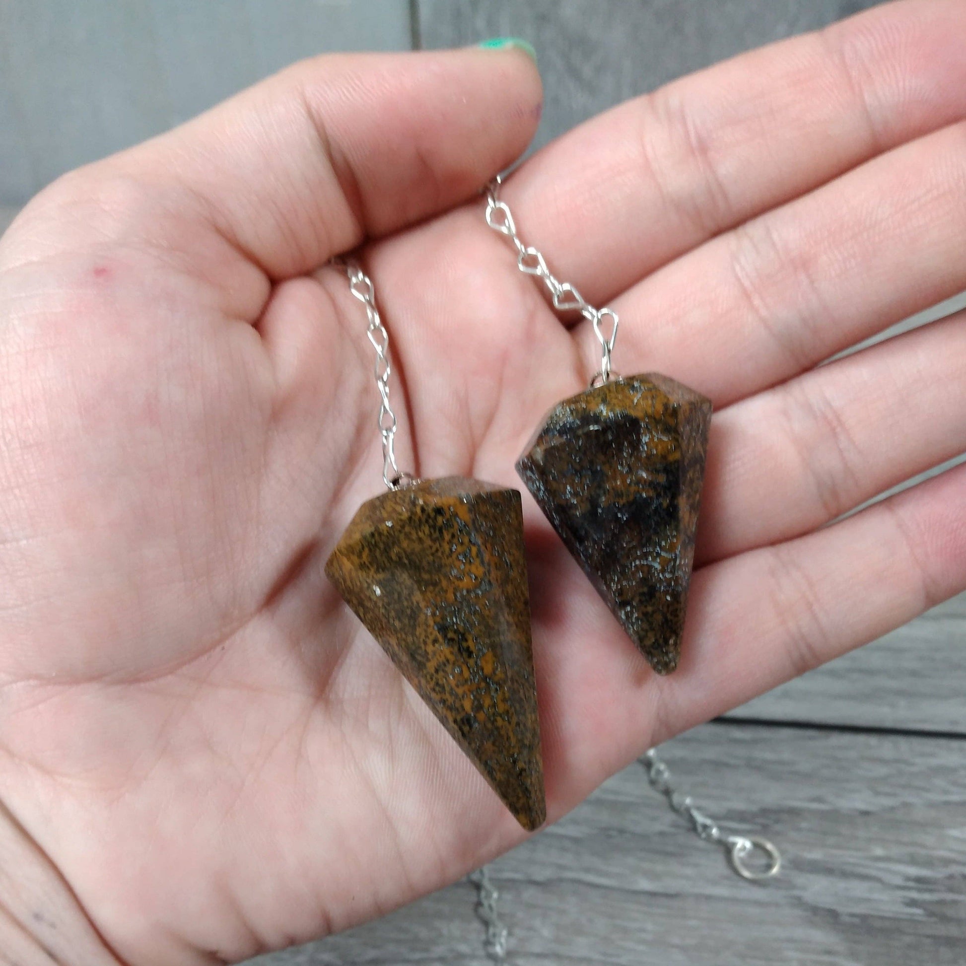 You get a gemstone pendulum of your choice. Each pendulum is approximately 1 inch long. Colors and sizes very.