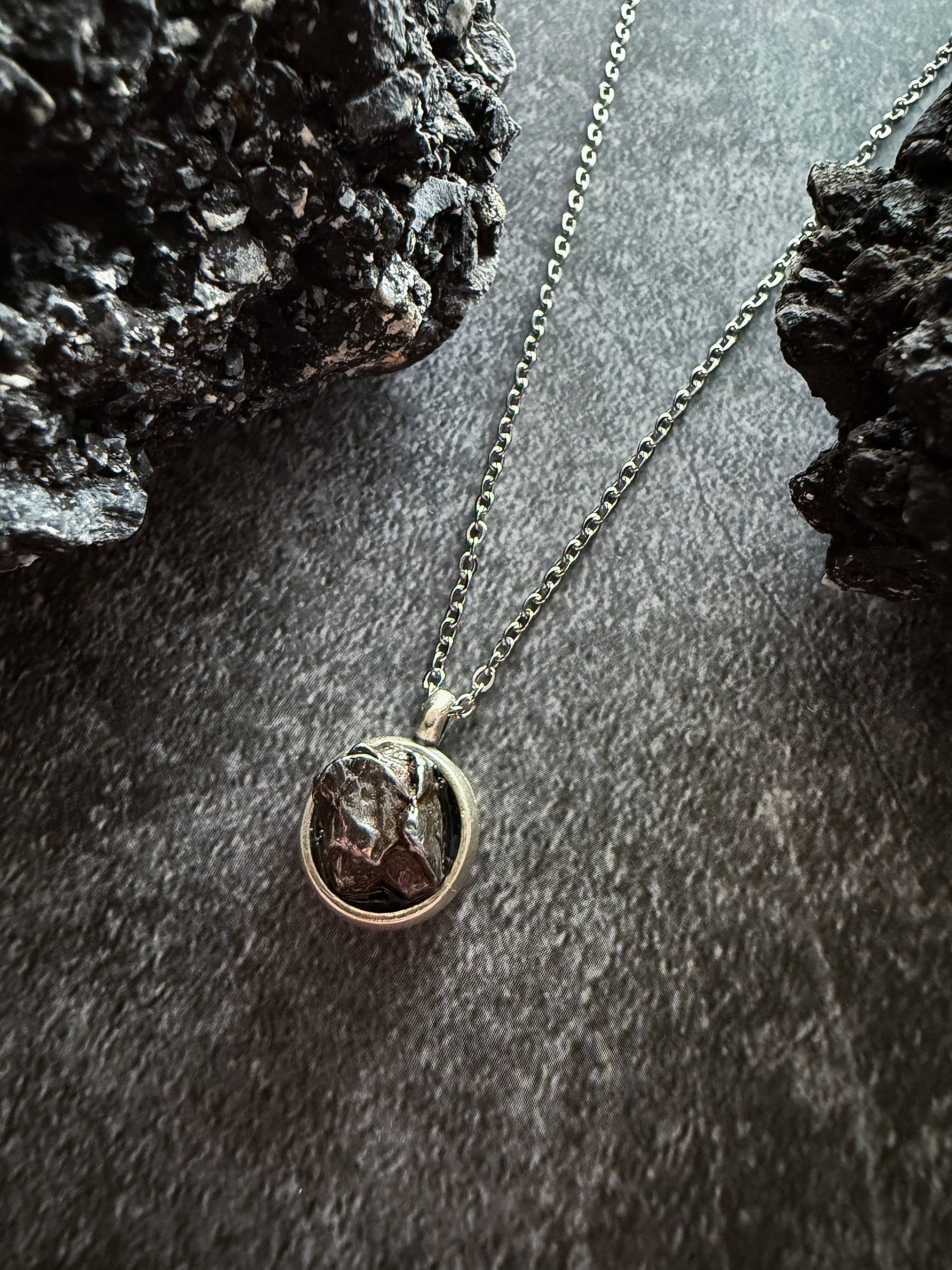 Small Round Authentic Meteorite Pendant Necklace